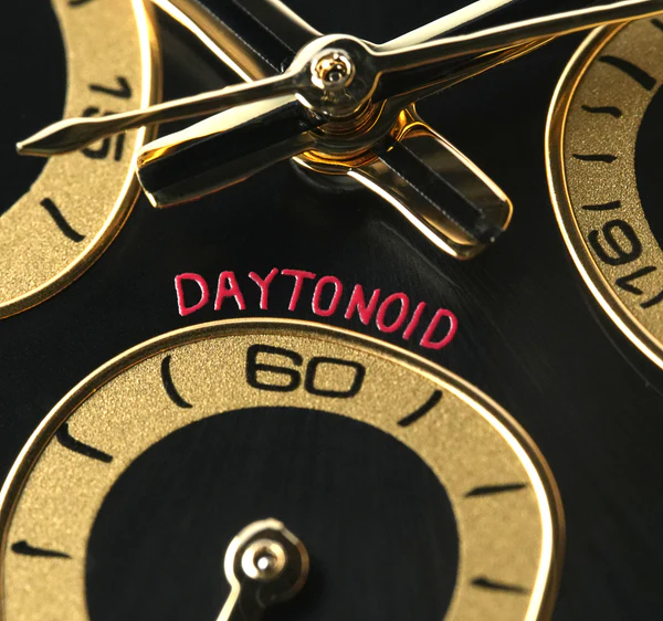 Our designs honour Labeg’s reinvention of traditional watch aesthetics, infusing them with a unique and whimsical touch. Inspired by his interpretation of the iconic black bay chrono, this timepiece boasts a mesmerizing dial set within an asymmetrical case, blending modern elegance with timeless allure.