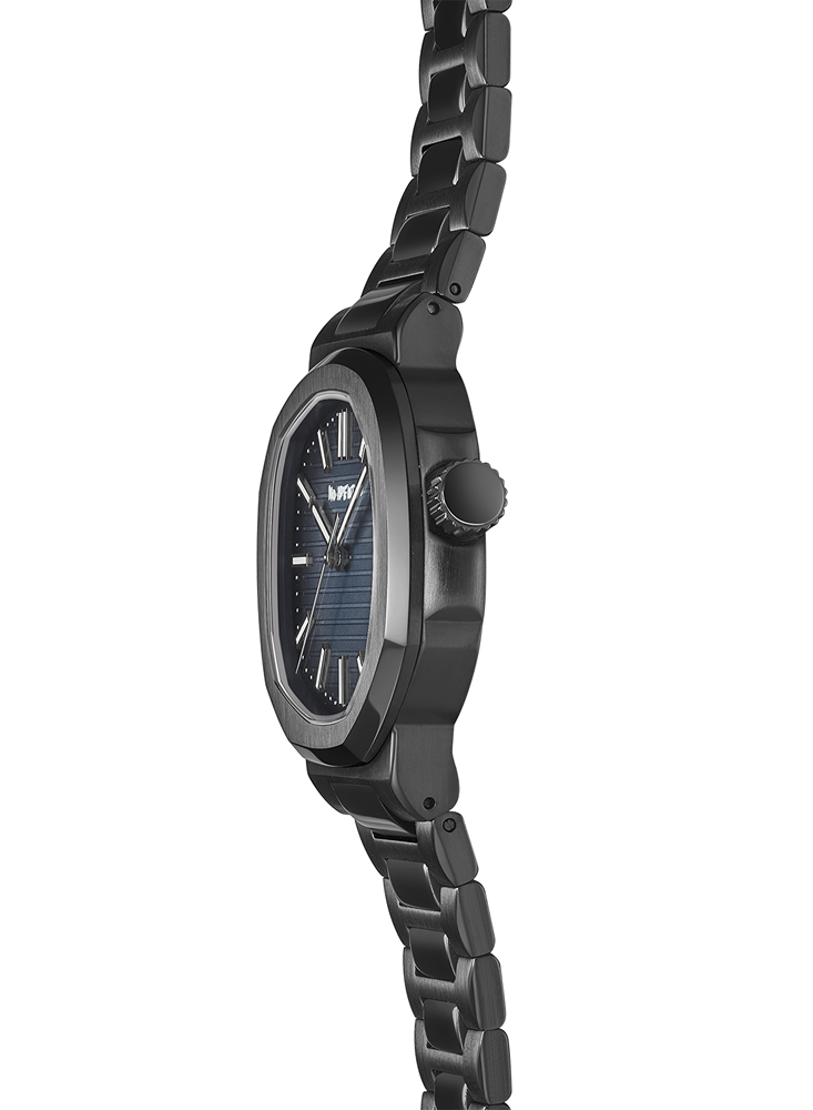 Introducing ‘Noir,’ one of the four watches from the collaboration between No Identity and Jacky Heung & Turn Left Studios. A fusion of sophistication and allure, this timepiece is meticulously crafted with a sleek black stainless steel strap that seamlessly complements a striking black dial, exuding an air of mystery and elegance.